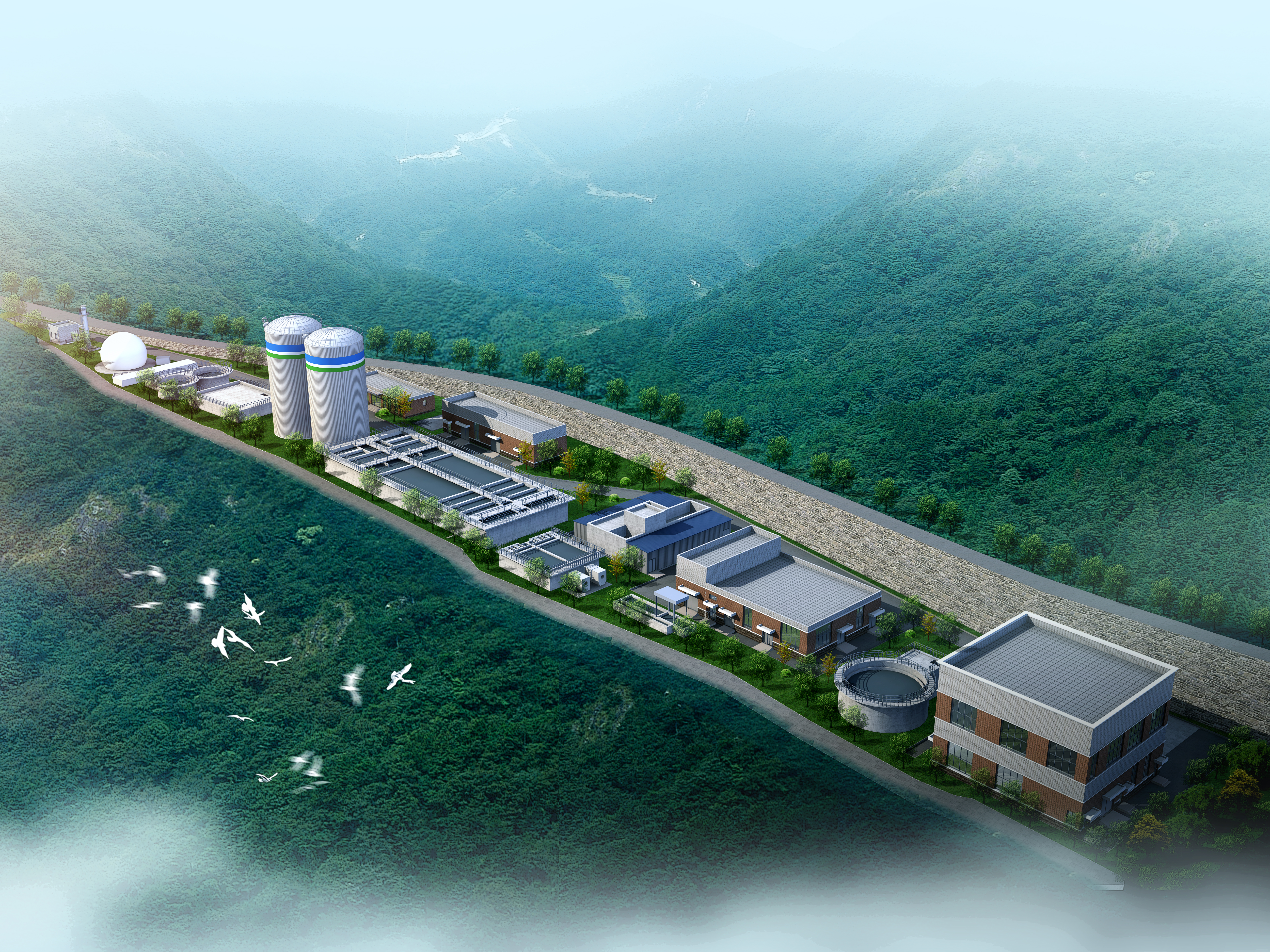 项目污水处理总规模为3000t/d,分两期建设,一期污水站处理规模为1500t/d,二期污水站处理规模为1500t/d。本项目方案主要考虑污水站一期建设,同时兼顾考虑一期和二期的部分建构筑物和设备的共用。