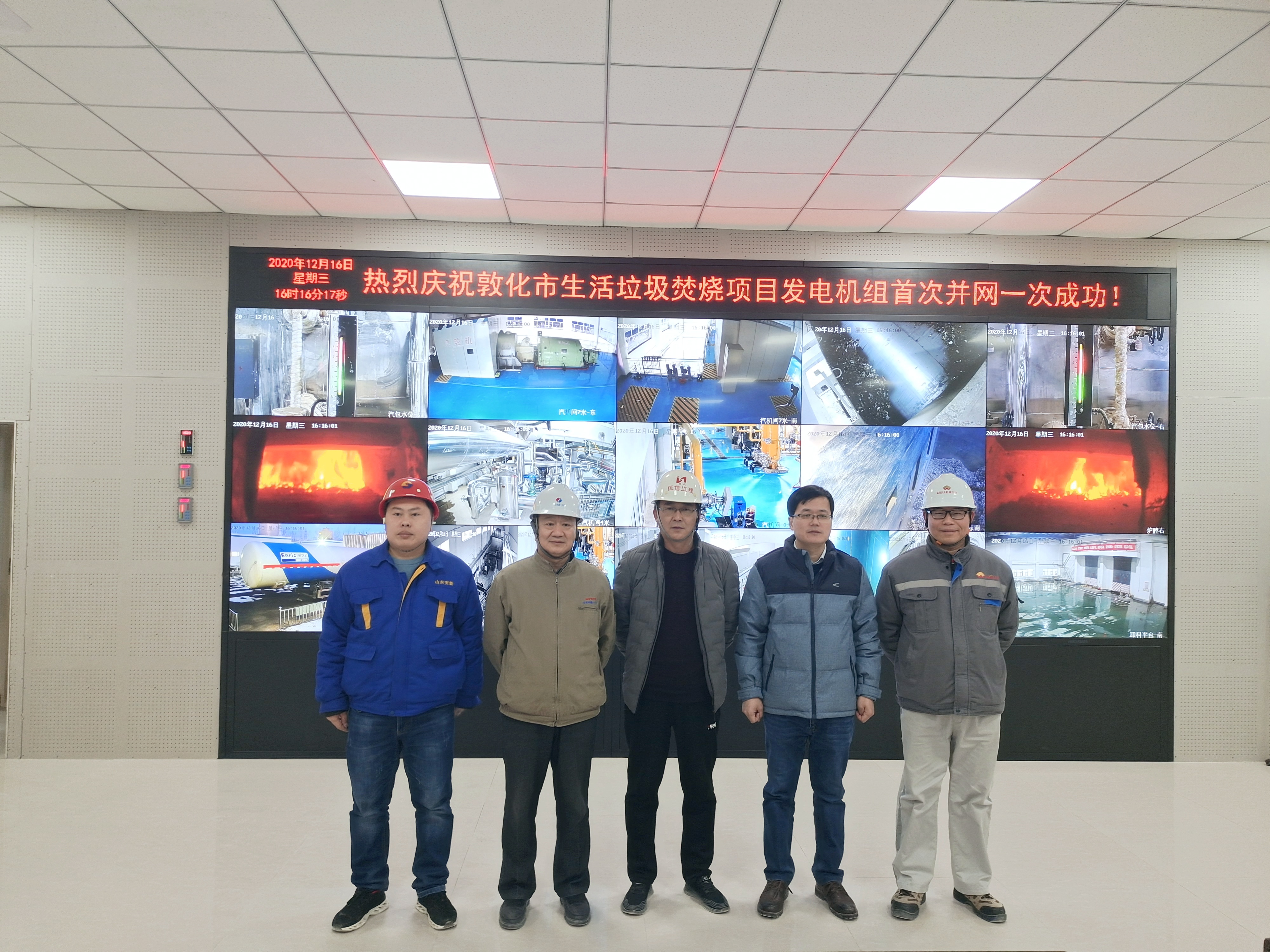 2020年12月16日16时06分,betway必威敦化市生活垃圾焚烧项目发电机组顺利并网发电成功。机组在并网开始带负荷运行期间,汽轮发电机组声音、振动、轴承温度等均符合技术规范要求,各系统运行正常。此次项目并网发电成功标志着betway必威在生活垃圾填埋,焚烧,餐厨厨余垃圾处理,危废焚烧,建筑垃圾等固废领域已具备全产业运营能力。