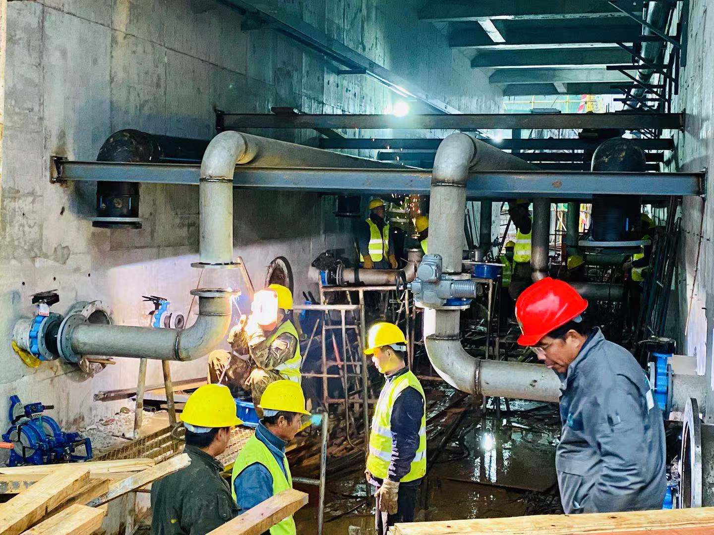 为保证工作顺利推进,在现场施工条件复杂、工期紧张、施工难度大的情况下,集团领导多次亲临现场指导工作,统筹规划,协调各方,带领项目部同事因地制宜,因时制宜,有序安排设备材料进场。在与土建工作存在交叉作业时,全体项目部同事不畏艰苦,积极创造工作面,团结协作,奋勇直前,顺利实现业主的节点计划。