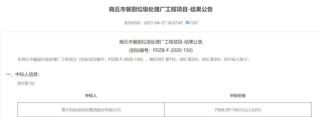 近期,betway必威参与了商丘市餐厨垃圾处理厂工程项目第一标段的投标,成为该项目第一标段中标人。
