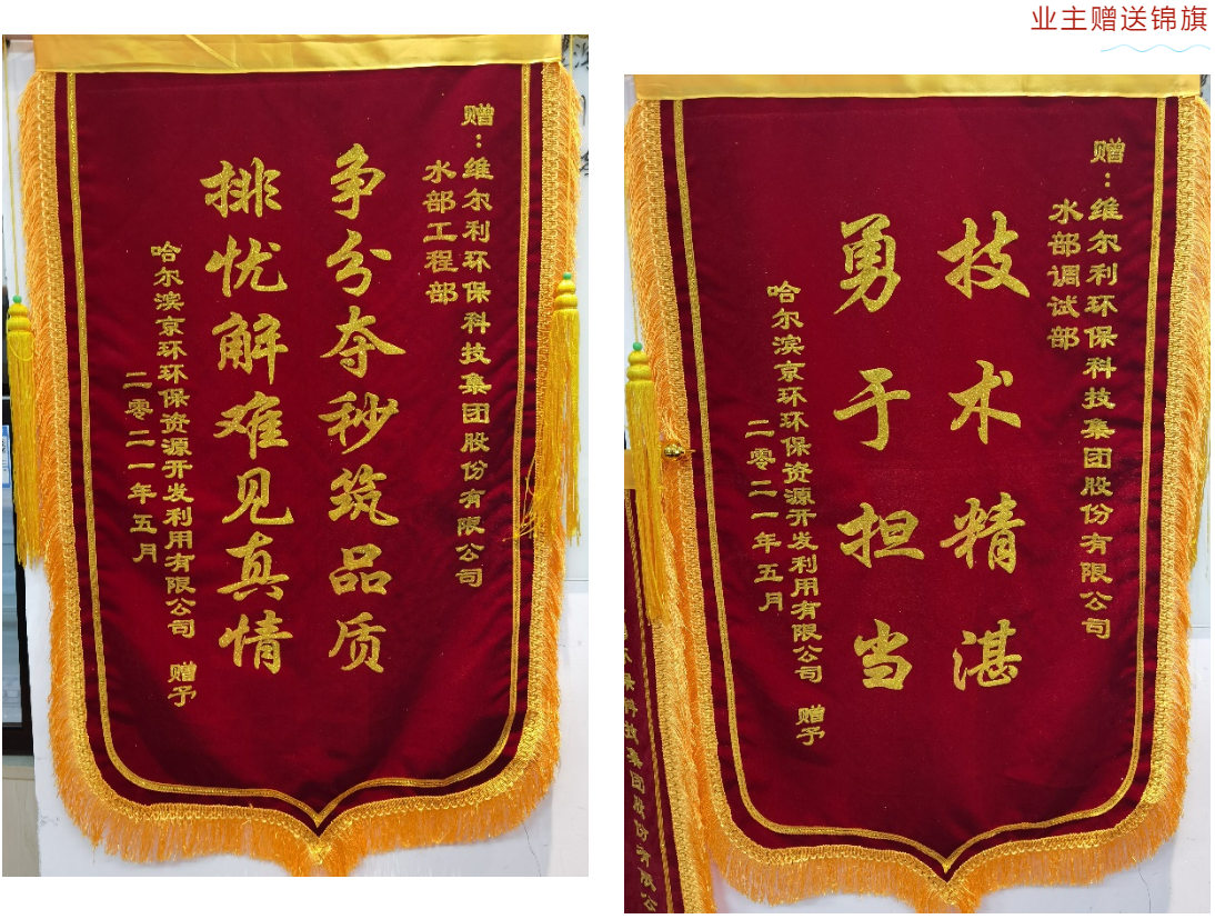 “哈尔滨京环环保资源开发利用有限公司废水处理站技术改造项目”处理规模为600t/d,主体工艺路线为“除渣、絮凝沉淀+厌氧+膜生物反应器(MBR)”,betway必威负责外置式MBR系统改造设计。在天气恶劣、土建延迟交安的情况下,集团项目团队勇担重任,科学组织、精心部署,顺利完工,业主方特赠锦旗表示肯定。