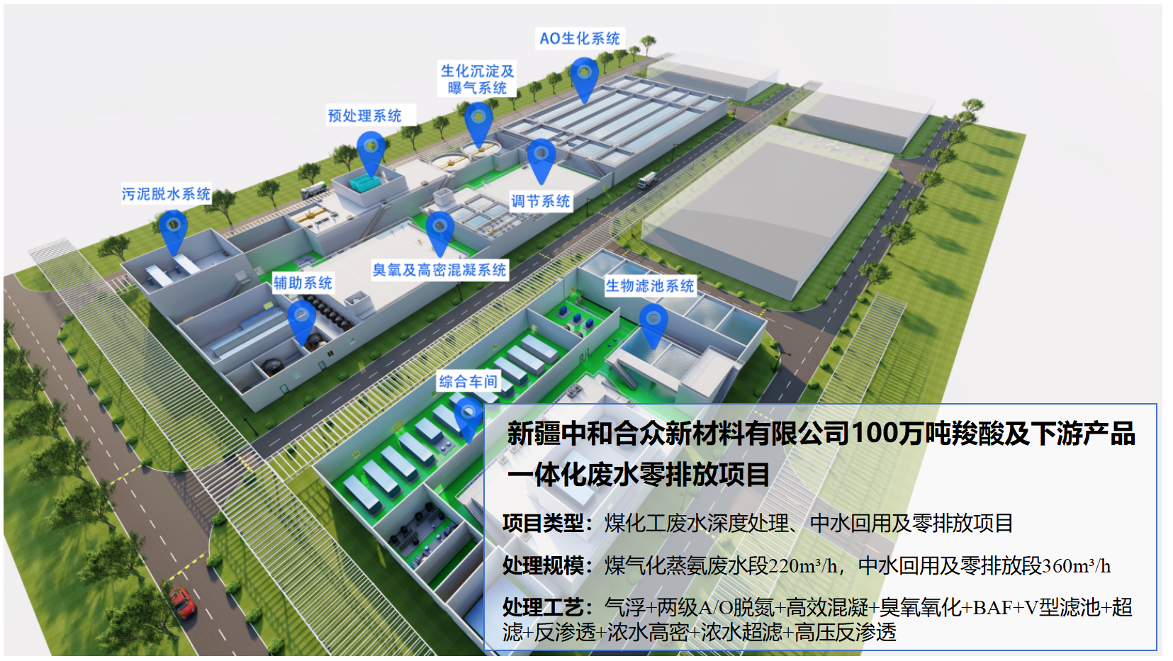 近日,betway必威成功签署了新疆中和合众新材料有限公司100万吨羧酸及下游产品一体化废水零排放项目。该项目涉及煤气化蒸氨废水处理和中水回用及零排放处理。煤气化蒸氨废水段的设计处理能力为220m³/h,中水回用及零排放段的设计处理能力为360m³/h。产水水质满足《城市污水再生利用-工业用水水质》(GB/T 19923-2005)中锅炉补给水水质标准。
